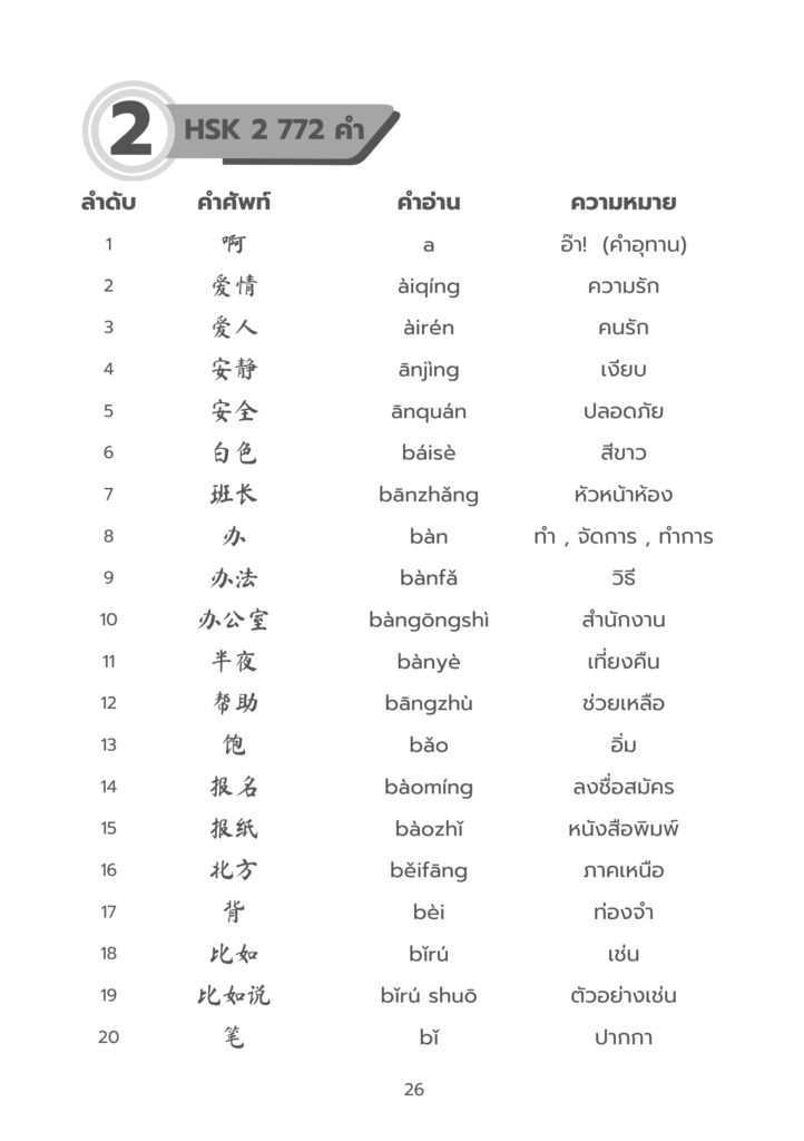 รวมคำศํพท์ HSK 1-3 ระบบใหม่ 2245 คำ